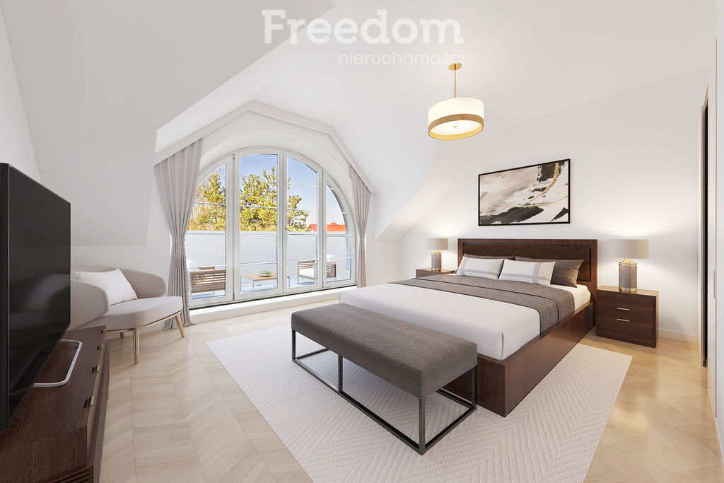Jedna z sypialni z wyjściem na duży taras